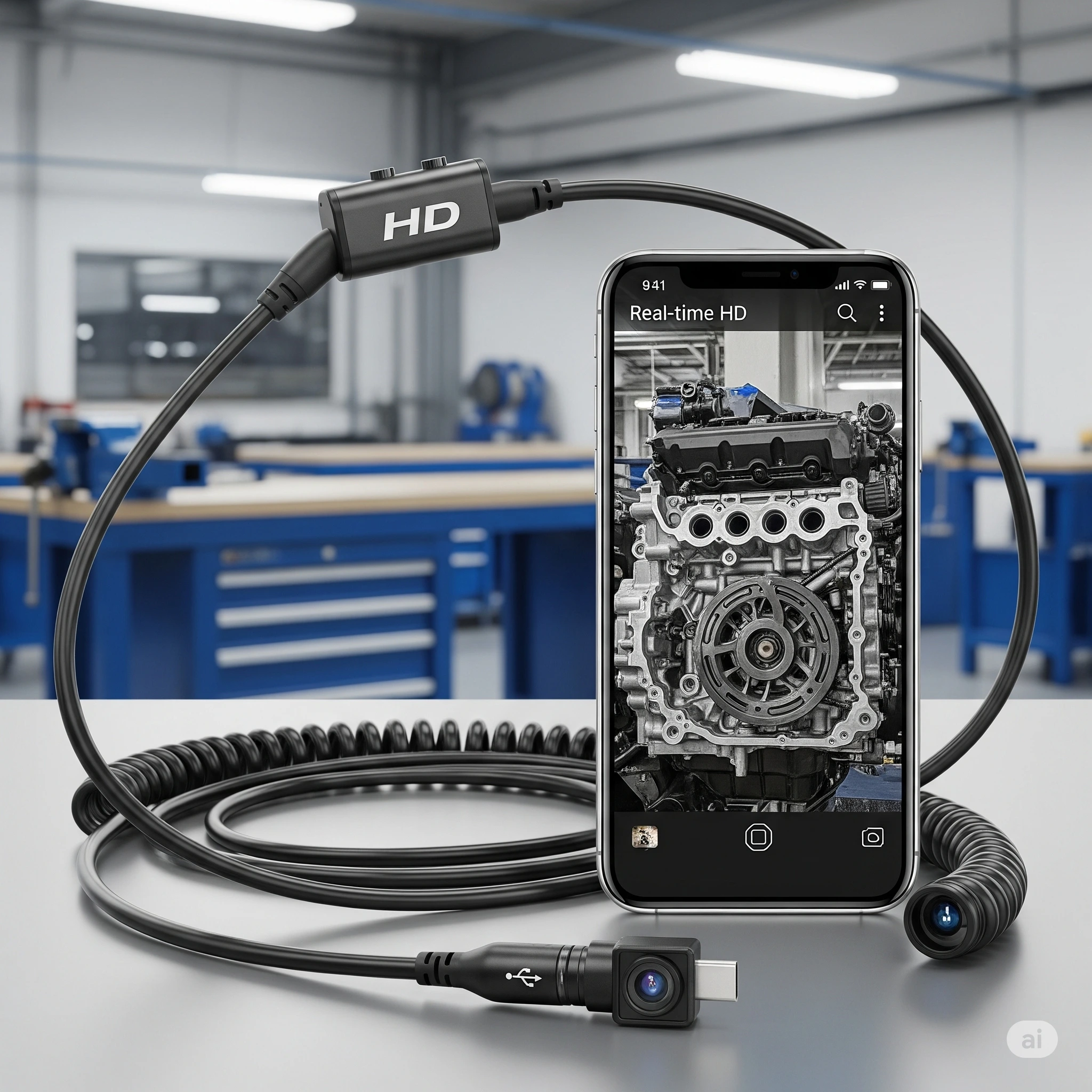 دوربین شلنگی (Endoscope Camera)، یک دوربین کوچک متصل به یک کابل انعطافپذیر است که میتواند به موبایل یا کامپیوتر متصل شود و تصاویر زنده یا ضبطشده را از فضاهای باریک و تاریک به شما نمایش دهد. این دوربینها معمولاً دارای LEDهای قابل تنظیم هستند و کیفیت تصویری در حدود VGA یا HD دارند.